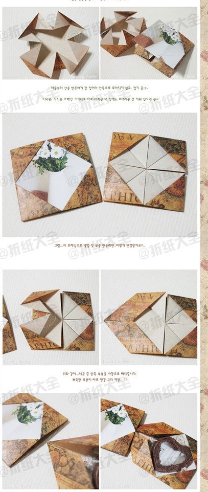 Olha só que fofo este álbum porta-retratos feito de dobradura. Confeccione e coloque fotografias daqueles momentos especiais e presentei a mamãe.
