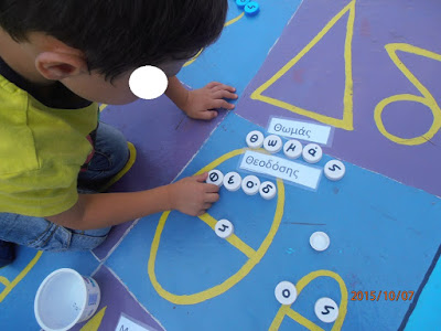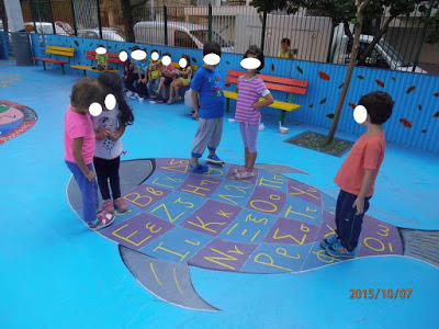 Na atividade abaixo (nas imagens) foi feito um grande peixe com divisórias com as letras do alfabeto (o alfabeto está em grego pois tirei de um site estrangeiro).
