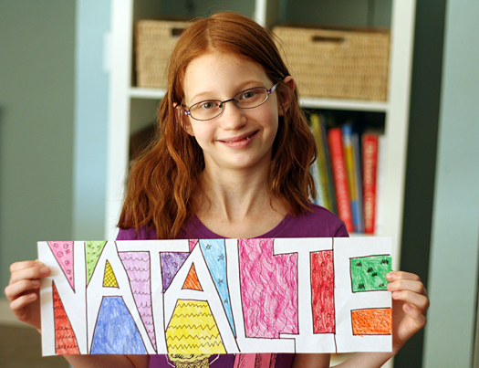 Se as crianças forem mais pequenas, escreva o nome para elas em letras grandes em caixa alta, as letras devem tocar a parte inferior e superior do papel bem como umas às outras.