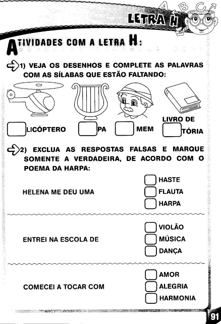 Atividades com as letras E, F, G e H: