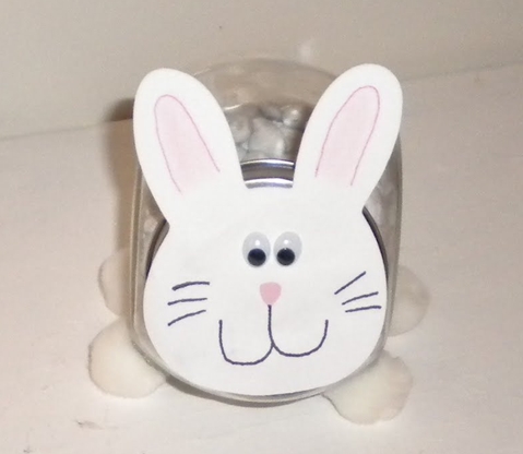 Achei na net esta bomboniere com carinha de coelho.