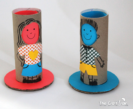 Confeccione bonecos com tubos de papel higiênico como estes para trabalhar as emoções com os pequenos.