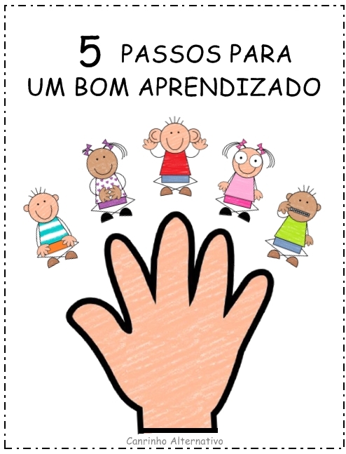 Este conjunto de cartazes ilustram “5 Passo para um bom aprendizado”, trata-se de truque do comportamento. Ao fazer lembretes visuais como este, imagino, que para as crianças sirvam como lembretes constantes, muito eficazes. O interessante é apresentar as imagens nos primeiris dias de aula. Em se tratando de crianças é muito importante ter gráficos que realmente mostram brincando quais são as expectativas e atitudes que podem as auxiliarem. Não foi eu que os criei mas dei uma editada pois se encontravam em inglês.