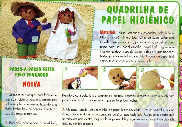Faça com as crianças lindos trabalhos de casais caipiras de tubos de papel higiênico referente as festividades juninas: