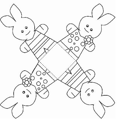 Esta lembrancinha de páscoa é super fácil de fazer, é só imprimir o molde abaixo, colorir, recortas e encaixar as patinhas dos coelhos formando uma espécie de porta ovos de páscoa.