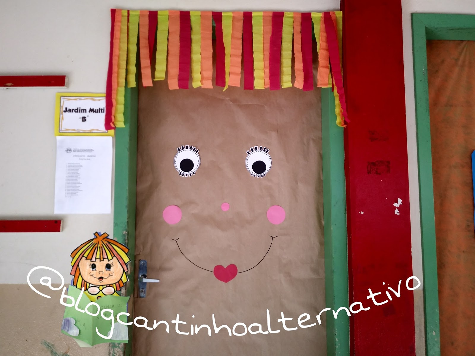 Porta decorada com a Emília da turma do Sítio do Pica Pau Amarelo.
