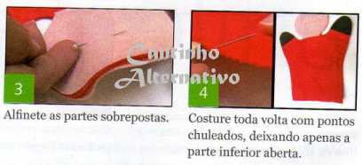 Materiais- feltro nas cores, vermelho, verde, pele, preto e amarelo;