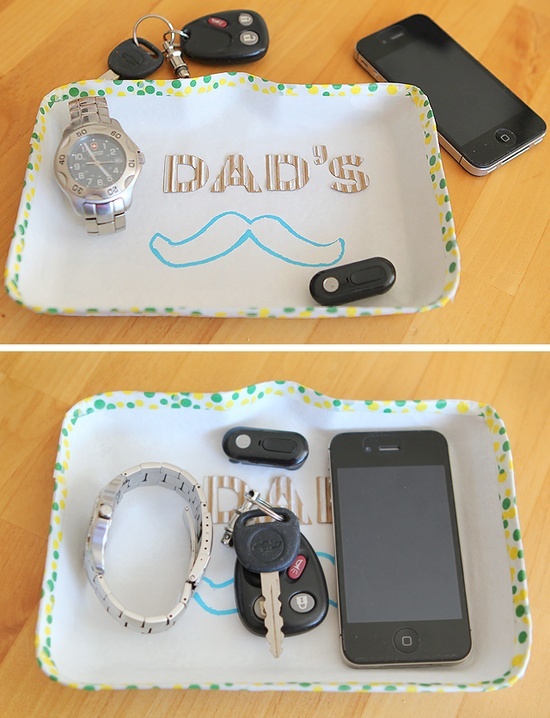 Pronto, além de ganhar uma bela lembrancinha, o papai vai ter seu próprio lugar para colocar todas as suas coisas quando ele chega em casa todos os dias.