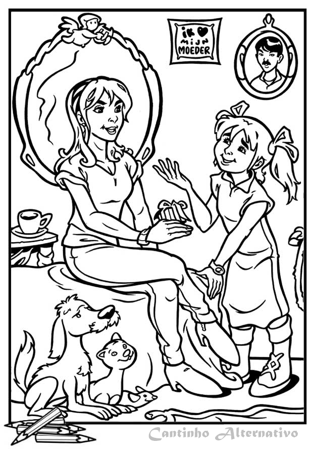 Segue abaixo lindos desenhos de dia das mães para imprimir e dar para a criançada colorir.
