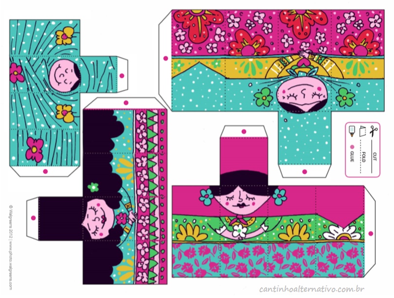 E para começo de conversa deixo para vocês a simpática Matrioska e sua linda família para confeccionar em forma de caixas, este modelo colorido já vem pronto para imprimir, recortar e montar.