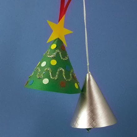 Dica: Você pode fazer outros ornamentos com o cone, mudando as cores e decorações. Faça um chapéu de Papai Noel com um cone vermelho e cole algodão para o pompom. Ou faça um sino prata ou dourado.