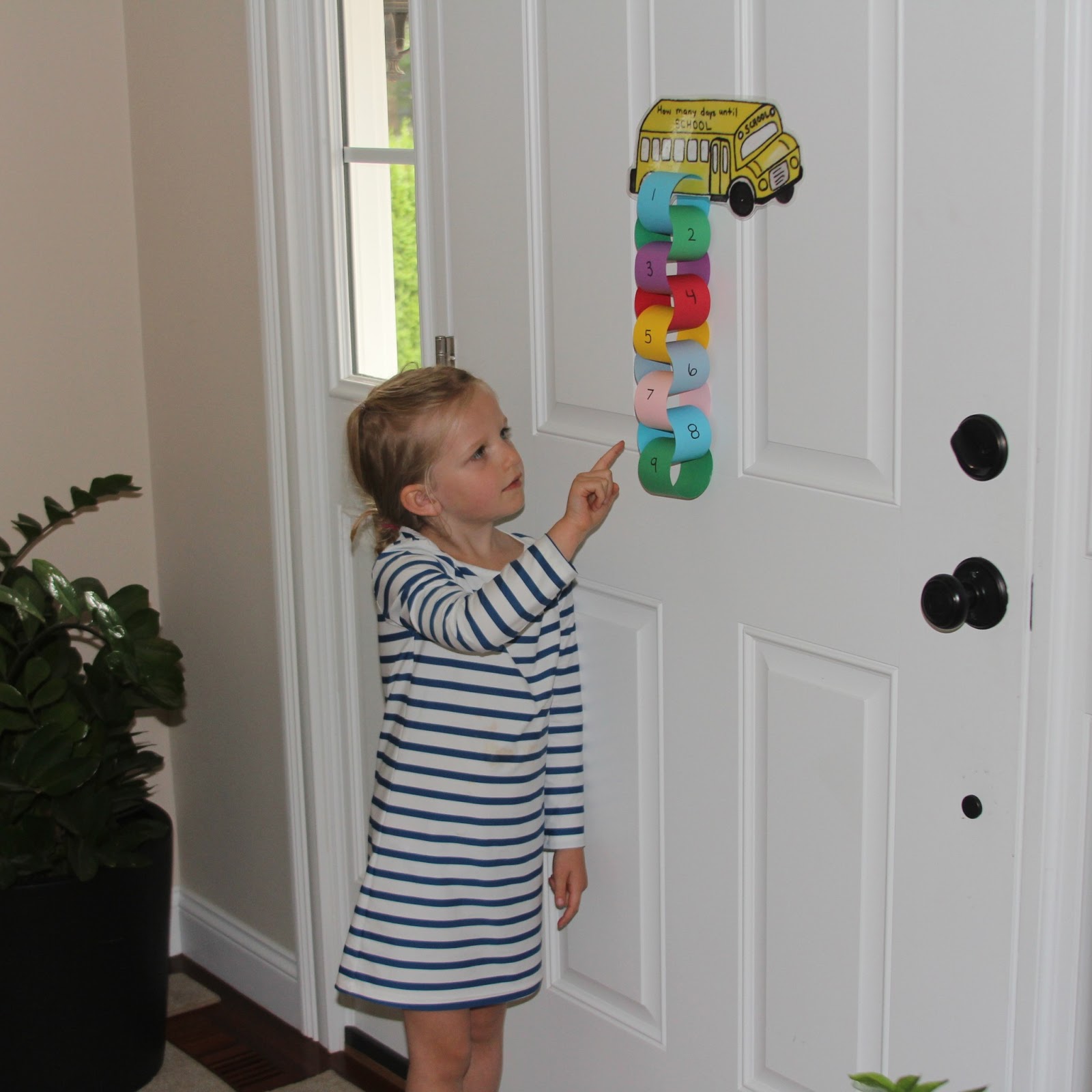 Quando faltar exatamente dez dias para o 1º dia de aula, leve a criança até o “ônibus” e deixe-a rasgar ou cortar uma argola a de número 10, isso quer dizer que agora falta 9 dias para o início da aula. Faça isso todos os dias em contagem regressiva até chegar no 1º dia de aula.