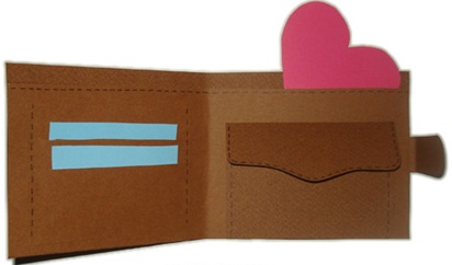 Colar no lado direito um pedaço de cartão com um fecho de carteira: