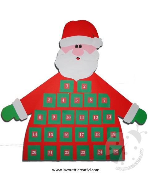 Desta vez ele é um simpático Papai Noel com vários bolsinhos e a cada dia que antecede o natal a criança tira um enfeite para colocar em seu pinheirinho.