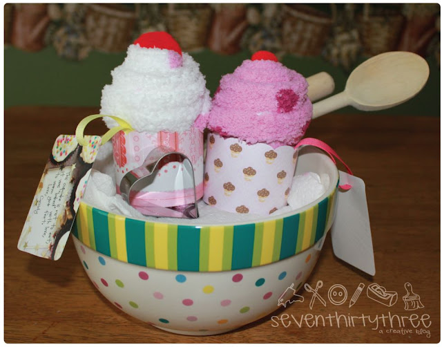 Minha dica é que em vez de usar meias, você pode usar toalhinhas depois é só colocar dentro de uma tigela bem bonita e alguns utensílios de cozinha ou utensílios pessoais.
