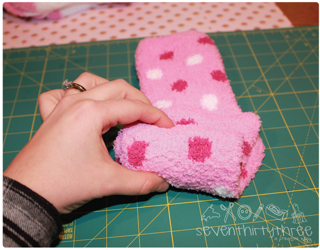 (para fazer com toalha faça o mesmo procedimento só que a toalha deve ser dobrada até ficar mais ou menos da largura que a meia):