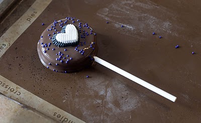 Abra o biscoito ao meio e coloque o palito no recheio, para unir as duas partes novamente utilize um pouco de chocolate derretido.