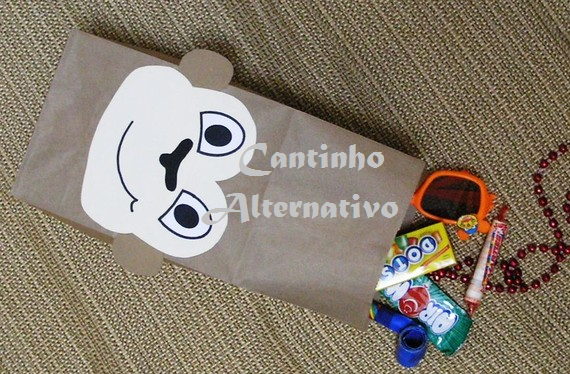 Materiais: sacos de papel marrom, cola, cartolina, canetinha de hidrocor.