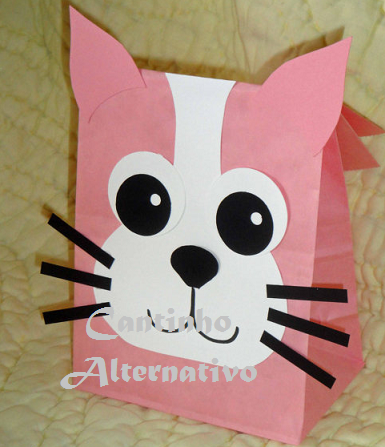 Confeccione sacolinhas de gatinha e gatinho para colocar as guloseimas para lembrancinha de dia das crianças.