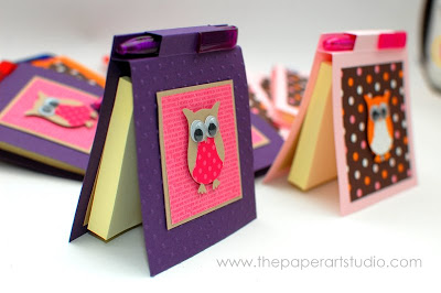 Cole um aplique bem bonito de coruja, o bloquinho e cole também imãs na parte de trás para poder prender à geladeira.