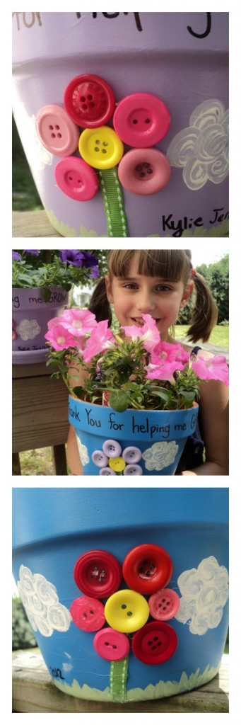Demonstre todo seu carinho pela mamãesdecorando vasos com botões e fitas: